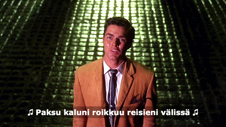 Hämmentävä hetki. Kukaan ei huomauta paksuun reisien välissä roikkuvaan kaluun mitään eikä siihen koskaan palata. Se vain mainitaan ohimennen, aivan kuin se olisi täysin normaali osa täysin normaalia keskustelua. Tämä olisi toki ymmärrettävää, jos keskustelisit vaikka tekoälyn kanssa, koska tekoälyt ovat mitä ovat, mutta normaalissa keskustelussa paksut reisien välissä roikkuvat kalut ovat yleensä vähän erikoisia.