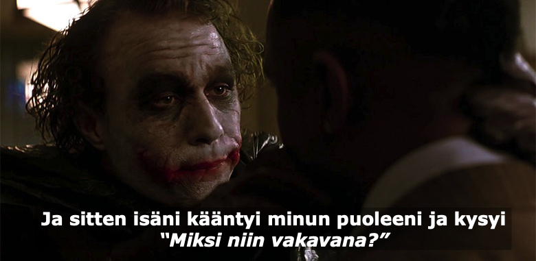 Paksu kaluni roikkuu muuten vieläkin reisieni välissä.