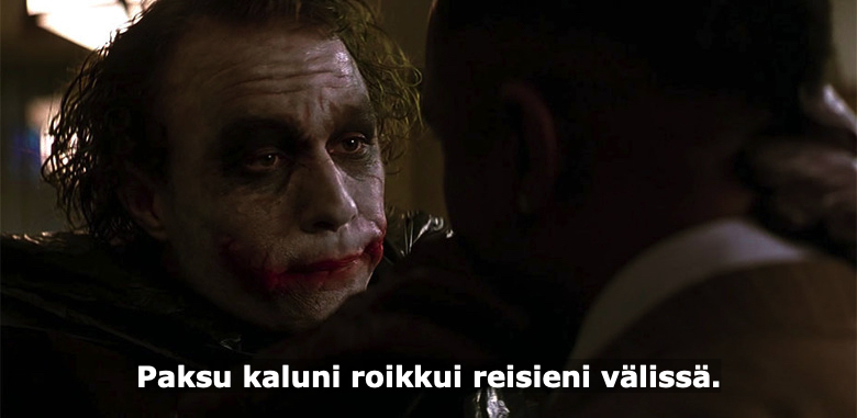 Paksu kaluni roikkuu muuten vieläkin reisieni välissä.