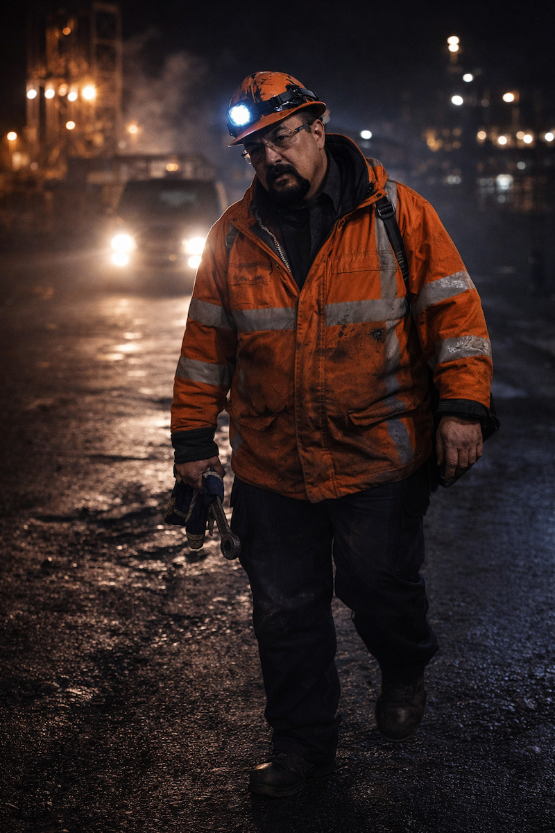 Tehdas oli koko toukokuun kolmessa vuorossa, joten tässä kuva Stevenistä kävelemässä reippaana yötöihin. Tämä oli ensimmäinen kerta elämässäni, kun jouduin tekemään yötöitä enkä ollut suurin fani. Toisena yötyöviikkona en saanut nukuttua päivässä kun max kaksi tuntia ja koko kehoni oli täynnä rakkuloita. Uskoisin, että rakkulat johtuivat joko unenpuutteesta tai sitten ne olivat jokin jälkitauti siitä tarantellasta, jonka jouduin murskaamaan jalallani.